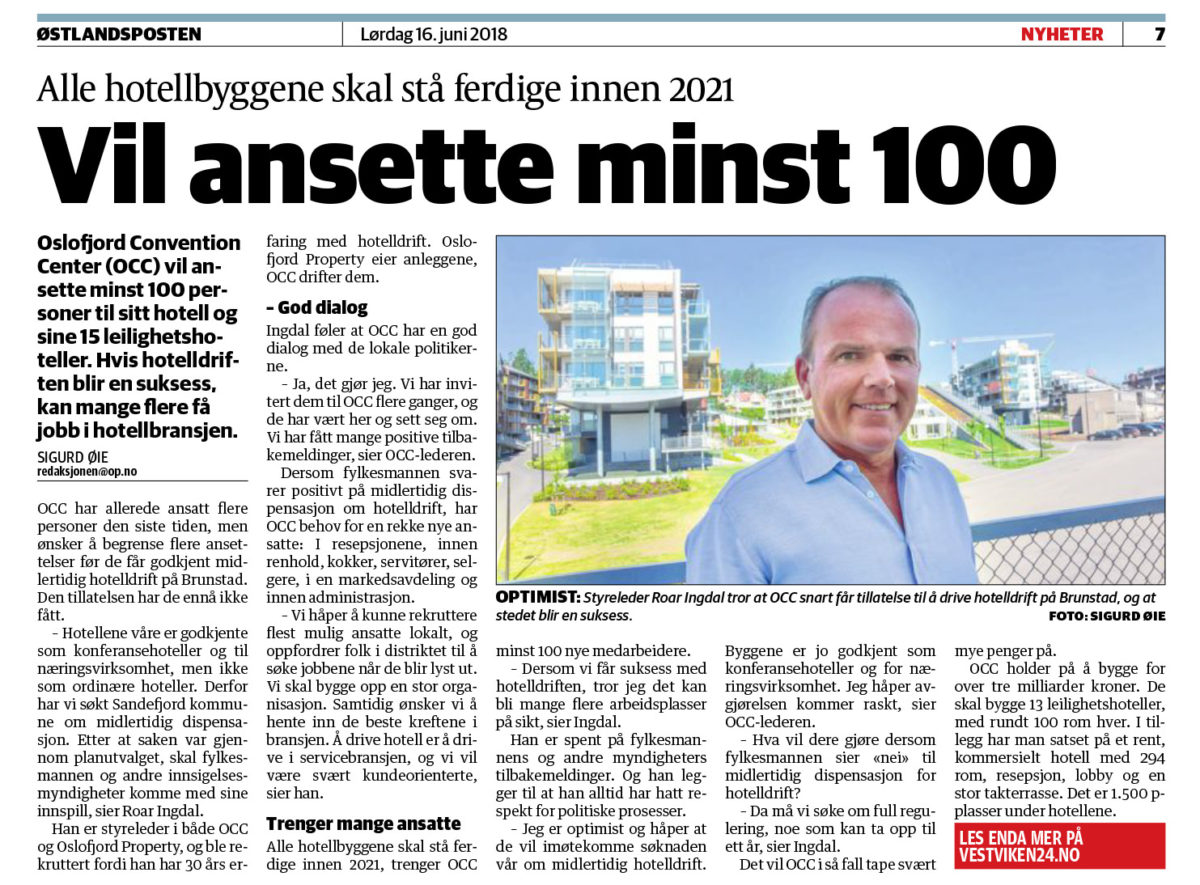 Presse, Uncategorized Vil ansette minst 100 16 jun Publisert i Østlandsposten d. 16. juni 2018 Vil gjerne bli Nordens Las Vegas De første hotellgjestene er på plass
