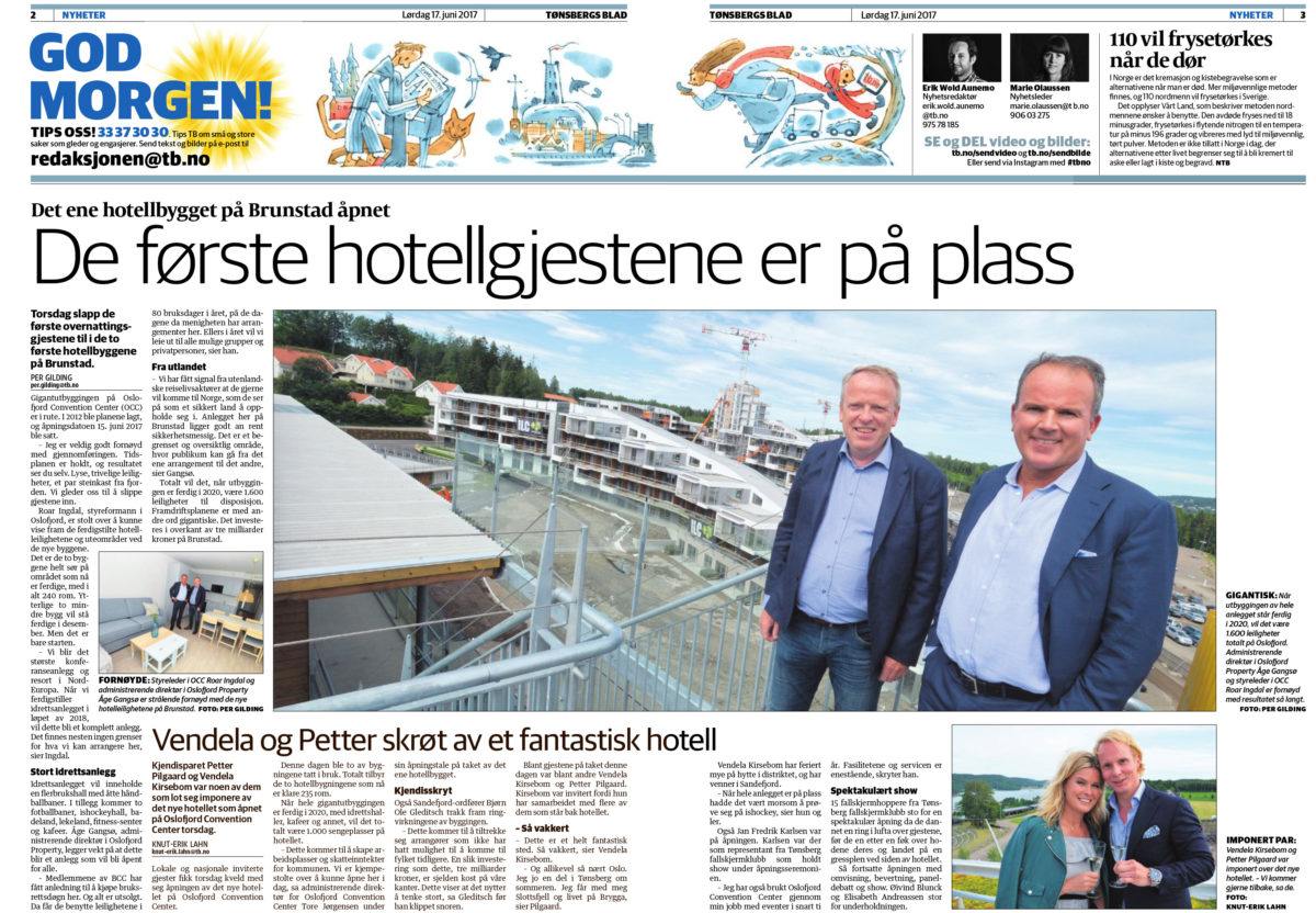 Presse De første hotellgjestene er på plass 17 jun Publisert i Tønsberg Blad d. 17. juni 2018 Vil ansette minst 100 Unngikk kjempesmell